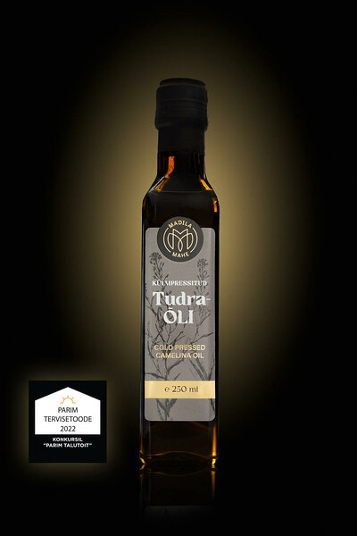 Harjumaal, Madila mahemaadel ökoloogiliselt kasvatatud põldtudra (Camelina sativa) seemnetest külmpressitud neitsiõli on erakordselt tervislik ja kvaliteetne toiduõli. See on suurepärane oomega-3-rasvhapete allikas ning mõnusalt pehme ja mandlise maitsega.Madila Mahe tudraõli sobib igasuguseks toiduvalmistamiseks, nii salatitesse kui praadimiseks ja on 100% kodumaine.